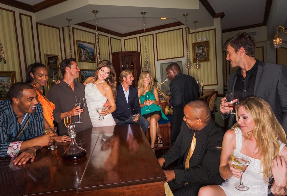 Sandals Montego Bay is known as a lively resort, and while much of the entertainment happens during the day, it carries on into the night. The resort 6 bars, including a piano bar, and has beach bonfires, theme nights, and other types of parties.