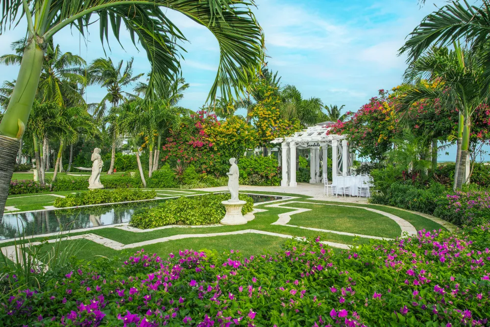 Available only at Sandals Ochi in Jamaica and Sandals Grande Antigua, this venue features a white pergola surrounded by manicured lawns, beautiful blooms, and elegant water features.