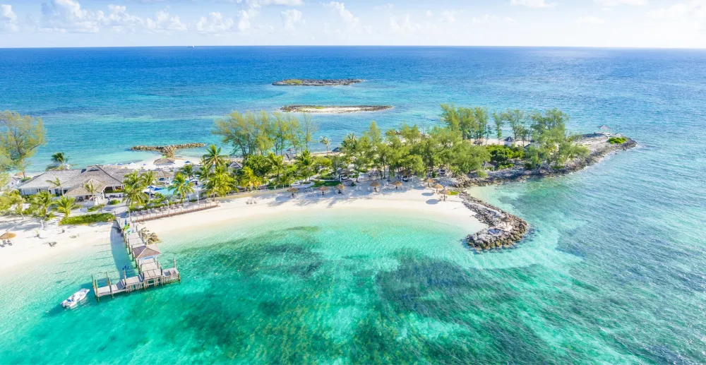Located at Sandals Royal Bahamian, the private offshore island features white sand beaches plus amenities like a pool with swim-up bar.